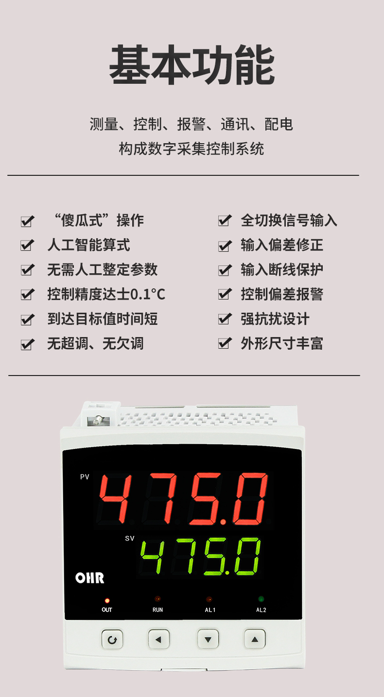 虹潤公司是專業(yè)生產(chǎn)溫控器的國家專精特新“小巨人”企業(yè)。生產(chǎn)的傻瓜式智能溫控器,具有傻瓜式操作,真正人工智能算式,無需人工整定參數(shù),控制精度可達(dá)±0.1°C,高抗干擾等特點(diǎn)。產(chǎn)品獲得模糊PID控制儀及控制方法、人工智能調(diào)節(jié)器、智能化控制器、移相觸發(fā)控制器、閥門自動手動無擾動操作控制方法及裝置等5項(xiàng)國家發(fā)明專利,主持起草工業(yè)過程控制系統(tǒng)用模擬輸入兩位或多位輸出儀表、物聯(lián)網(wǎng)智能溫度儀表通用技術(shù)條件、工業(yè)過程測量和控制系統(tǒng)用智能調(diào)節(jié)器等3項(xiàng)國家標(biāo)準(zhǔn),以及通信系統(tǒng)多通道數(shù)據(jù)采集控制終端規(guī)范軍用標(biāo)準(zhǔn),參與國際5G標(biāo)準(zhǔn)制定,取得傻瓜式模糊PID調(diào)節(jié)儀等3項(xiàng)相關(guān)軟件著作權(quán)。產(chǎn)品廣泛應(yīng)用于電力、石化,冶金、制藥、食品等幾乎所有工業(yè)現(xiàn)場,實(shí)現(xiàn)精準(zhǔn)控溫,保障生產(chǎn)安全與質(zhì)量。