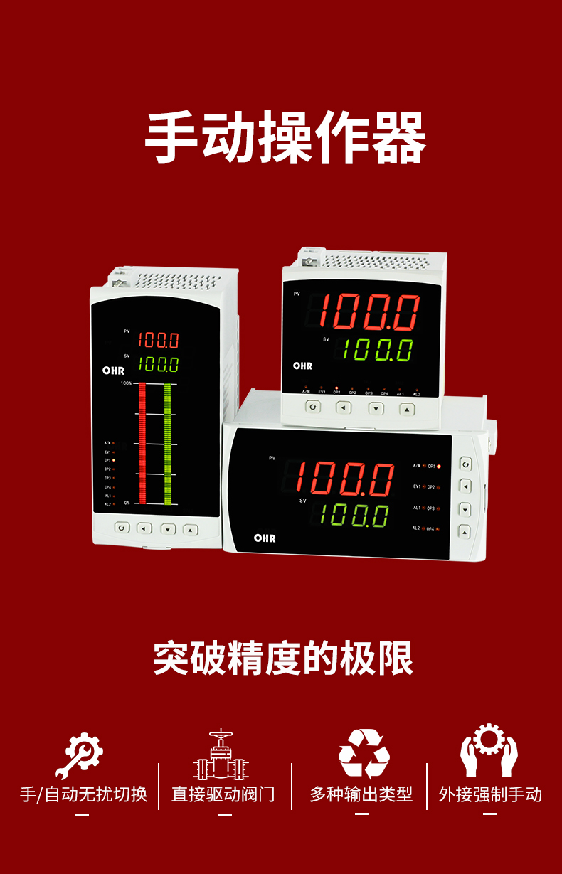 虹潤公司是專業(yè)生產(chǎn)智能手操器的國家專精特新“小巨人”企業(yè),生產(chǎn)的手動操作器,具有手自動無擾切換,直接調(diào)節(jié)閥門,多種輸出類型,外接強制手動功能,高抗干擾等特點。產(chǎn)品獲得閥門自動手動無擾動操作控制方法及裝置、模糊PID控制儀及控制方法、移相觸發(fā)控制器等3項國家標準,主持起草工業(yè)過程控制系統(tǒng)用模擬輸入兩位或多位輸出儀表、流程工業(yè)中電氣/儀表和控制系統(tǒng)的試車等2項國家標準,以及通信系統(tǒng)多通道數(shù)據(jù)采集控制終端規(guī)范軍用標準,參與國際5G標準制定,取得手動操作器等3項相關軟件著作權。產(chǎn)品廣泛應用于電力、石化、冶金、化工、造紙、食品、輕工、制藥、熱處理、水處理、機械配套等各種工業(yè)現(xiàn)場。