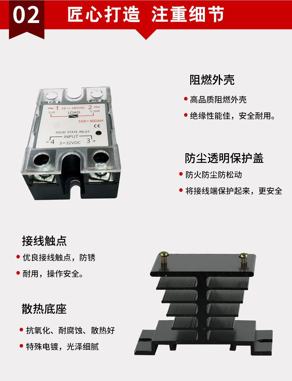 OHR-SSR固態(tài)繼電器尺寸小巧,內置壓敏電阻及阻容吸收回路,具有吸收電網尖峰電壓抗干擾能力??赏ㄟ^動作指示燈來檢查工作狀態(tài),寬電壓輸出,可達到AC38-480V,低觸發(fā)電流小干8mA。