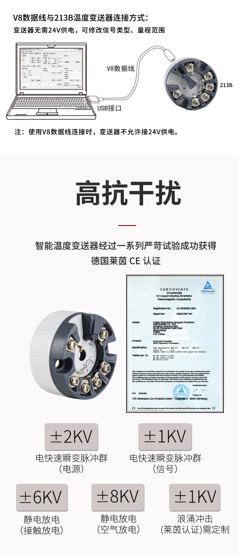 虹潤(rùn)公司是專業(yè)生產(chǎn)溫度變送器的國(guó)家專精特新“小巨人”企業(yè)。生產(chǎn)的智能溫度變送器,具有適配各類溫度傳感器,精度高,穩(wěn)定性好,通過(guò)編程線修改輸入信號(hào)類型及量程,高抗干擾等特點(diǎn)。該產(chǎn)品不僅通過(guò)HART基金會(huì)認(rèn)證、德國(guó)萊茵 CE 認(rèn)證與 SIL 功能安全認(rèn)證,還獲得具備減震抗干擾能力的溫度變送器、信號(hào)隔離器、一種二端子模塊、無(wú)源信號(hào)隔離器等4項(xiàng)國(guó)家發(fā)明專利,主持起草物聯(lián)網(wǎng)智能溫度儀表、現(xiàn)場(chǎng)設(shè)備工具(FDT)接口規(guī)范、工業(yè)過(guò)程測(cè)量和控制系統(tǒng)用溫度變送器等3項(xiàng)國(guó)家標(biāo)準(zhǔn),以及通信系統(tǒng)多通道數(shù)據(jù)采集控制終端規(guī)范軍用標(biāo)準(zhǔn),參與國(guó)際5G標(biāo)準(zhǔn)制定,取得智能溫度變送器、HART溫度變送器等3項(xiàng)相關(guān)軟件著作權(quán)。產(chǎn)品廣泛應(yīng)用于石油、化工、電力、冶金、制藥、食品、水處理等各種工業(yè)領(lǐng)域。