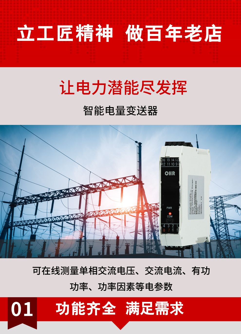 虹潤公司是專業(yè)生產(chǎn)電流傳感器的國家專精特新“小巨人”企業(yè)。生產(chǎn)的電量變送器,具有交流電壓電流輸入,傳輸精度高,響應時間快,配PCA編程器可組態(tài), 支持RS485通訊等特點。產(chǎn)品獲得基于一種交流信號變送器、交直流信號轉換電路、基于DCS技術的盤裝式三相電量表等3項國家發(fā)明專利,主持起草工業(yè)過程控制系統(tǒng)用模擬輸入兩位或多位輸出儀表國家標準,直流漏電流傳感器規(guī)范、通信系統(tǒng)多通道數(shù)據(jù)采集控制終端規(guī)范等2項軍用標準,以及現(xiàn)場設備集成等5項智能制造國家標準,參與國際5G標準制定,取得單相電量儀表等2項相關軟件著作權。產(chǎn)品廣泛應用于電力、冶金、化工、水泥、造紙、新能源、基礎設施等用電密集行業(yè)。