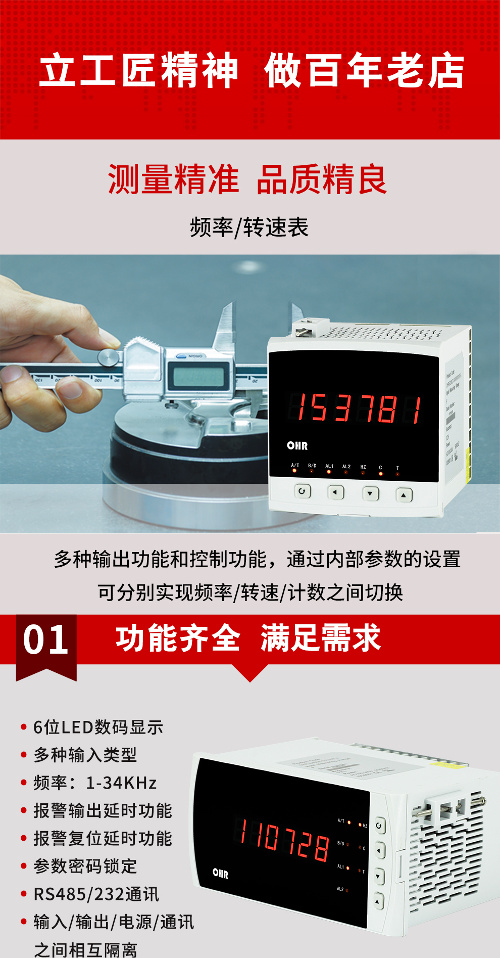 虹潤公司是專業(yè)生產(chǎn)頻率表的國家專精特新“小巨人”企業(yè)。生產(chǎn)的頻率/轉(zhuǎn)速表,具有可實現(xiàn)頻率、轉(zhuǎn)速與計數(shù)功能的切換,報警繼電器輸出,變送輸出,RS485通訊等特點。產(chǎn)品獲得基于儀表殼體、一種儀表電源等2項國家發(fā)明專利,主持起草流程工業(yè)中電氣/儀表和控制系統(tǒng)的試車國家標(biāo)準(zhǔn),通信系統(tǒng)多通道數(shù)據(jù)采集控制終端規(guī)范軍用標(biāo)準(zhǔn),以及現(xiàn)場設(shè)備集成等5項智能制造國家標(biāo)準(zhǔn)。參與國際5G標(biāo)準(zhǔn)制定,取得頻率轉(zhuǎn)速儀表等2項相關(guān)軟件著作權(quán)。產(chǎn)品廣泛應(yīng)用于電力系統(tǒng)、機(jī)械制造、汽車工業(yè)、航空航天、船舶海事、冶金礦山等行業(yè)的頻率與轉(zhuǎn)速參數(shù)監(jiān)測。