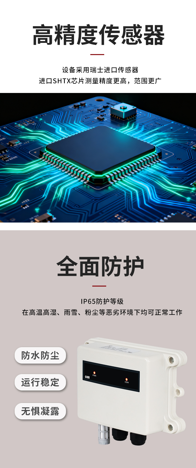 虹潤(rùn)公司是專(zhuān)業(yè)生產(chǎn)環(huán)境監(jiān)測(cè)儀表的國(guó)家專(zhuān)精特新“小巨人”企業(yè)。生產(chǎn)的一體式溫濕度變送器,具有溫度、濕度、露點(diǎn)高精準(zhǔn)的測(cè)量與變送,報(bào)警繼電器輸出,RS485/RS232通訊,IP65防護(hù)等級(jí)等特點(diǎn)。產(chǎn)品獲得一種手持式低功耗溫濕度檢測(cè)儀、大屏幕溫濕度記錄儀等2項(xiàng)國(guó)家發(fā)明專(zhuān)利,主持起草物聯(lián)網(wǎng)智能溫度儀表通用技術(shù)條件、冷鏈溫度記錄儀等2項(xiàng)國(guó)家標(biāo)準(zhǔn),以及通信系統(tǒng)多通道數(shù)據(jù)采集控制終端規(guī)范軍用標(biāo)準(zhǔn),以及現(xiàn)場(chǎng)設(shè)備集成等5項(xiàng)智能制造國(guó)家標(biāo)準(zhǔn),參與國(guó)際5G標(biāo)準(zhǔn)制定,取得溫濕度儀表等3項(xiàng)相關(guān)軟件著作權(quán)。產(chǎn)品廣泛應(yīng)用于工業(yè)現(xiàn)場(chǎng)、農(nóng)業(yè)大棚、倉(cāng)儲(chǔ)物流、地下管廊、養(yǎng)殖孵化、配電機(jī)房等諸多領(lǐng)域。