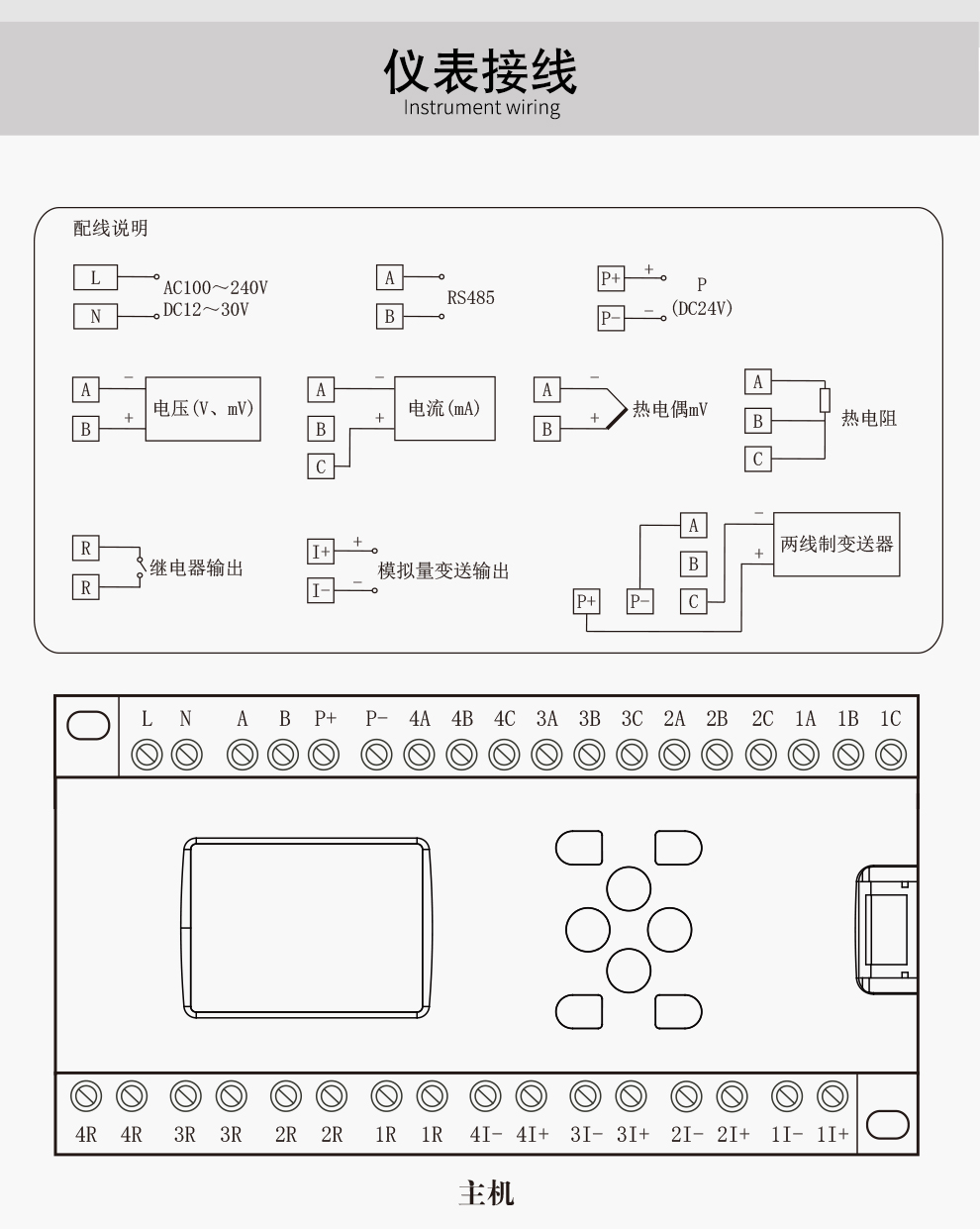 OHR-PR40系列數(shù)據(jù)控制器多重保護和隔離設 計,抗干擾能力強,可靠性高。儀表采用主副機結(jié)構(gòu)設計,主機可提供4路萬能信號輸入,通道間 相互隔離;4限報警輸出、4路變送輸出,饋電輸出、RS485通訊、以太網(wǎng)通訊等功能,連接副機可將I/O容量 擴展至8路輸入和8限報警輸出、8路變送輸出。
