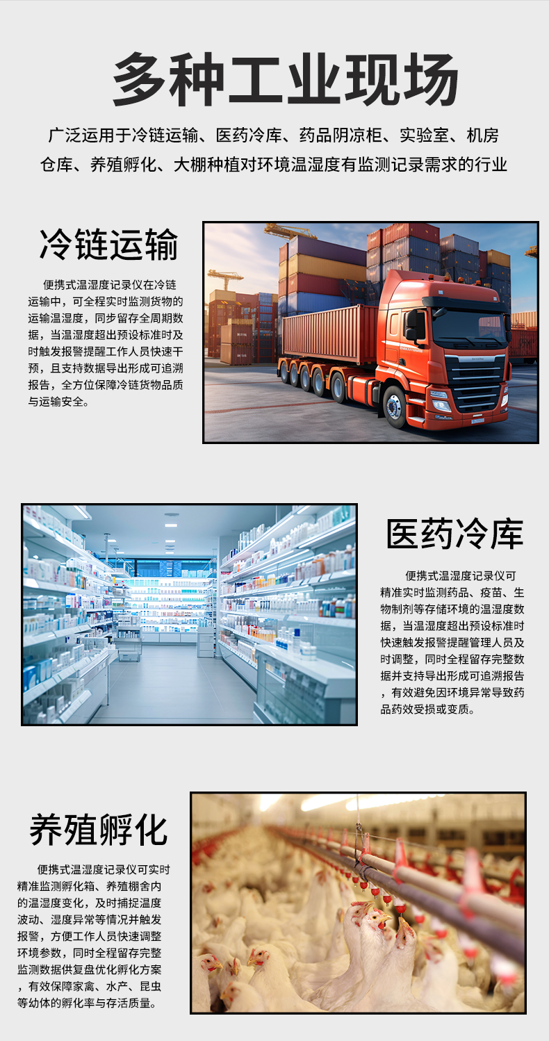 虹潤公司是專業(yè)生產(chǎn)環(huán)境監(jiān)測儀表的國家專精特新“小巨人”企業(yè)。生產(chǎn)的便攜式溫濕度記錄儀,具有溫濕度記錄與轉(zhuǎn)存,手機充電電池,磁吸或壁掛安裝,故障報警提示,配上位機軟件等特點。產(chǎn)品獲得一種手持式低功耗溫濕度檢測儀、無紙記錄儀等2項國家發(fā)明專利,主持起草物聯(lián)網(wǎng)智能溫度儀表通用技術(shù)條件、冷鏈溫度記錄儀等2項國家標準,通信系統(tǒng)多通道數(shù)據(jù)采集控制終端規(guī)范軍用標準,以及現(xiàn)場設(shè)備集成等5項智能制造國家標準,參與國際5G標準制定,取得便攜式溫濕度記錄儀等3項相關(guān)軟件著作權(quán)。產(chǎn)品廣泛應(yīng)用于冷鏈運輸、醫(yī)藥冷庫、藥品陰涼柜、實驗室、機房倉庫、養(yǎng)殖孵化、大棚種植等諸多領(lǐng)域。
